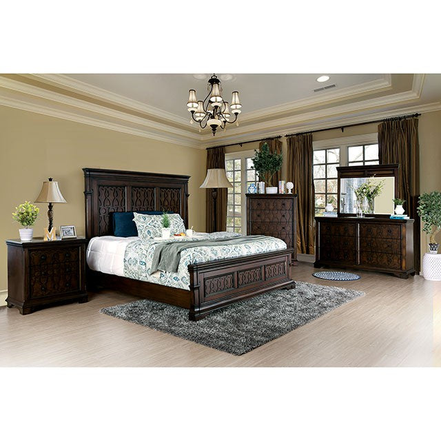 Create a cozy bedroom retreat with this transitional style collection that boasts a harvest brown finish. Lavish molded trim details exude elegance in this stunning matching mirror.